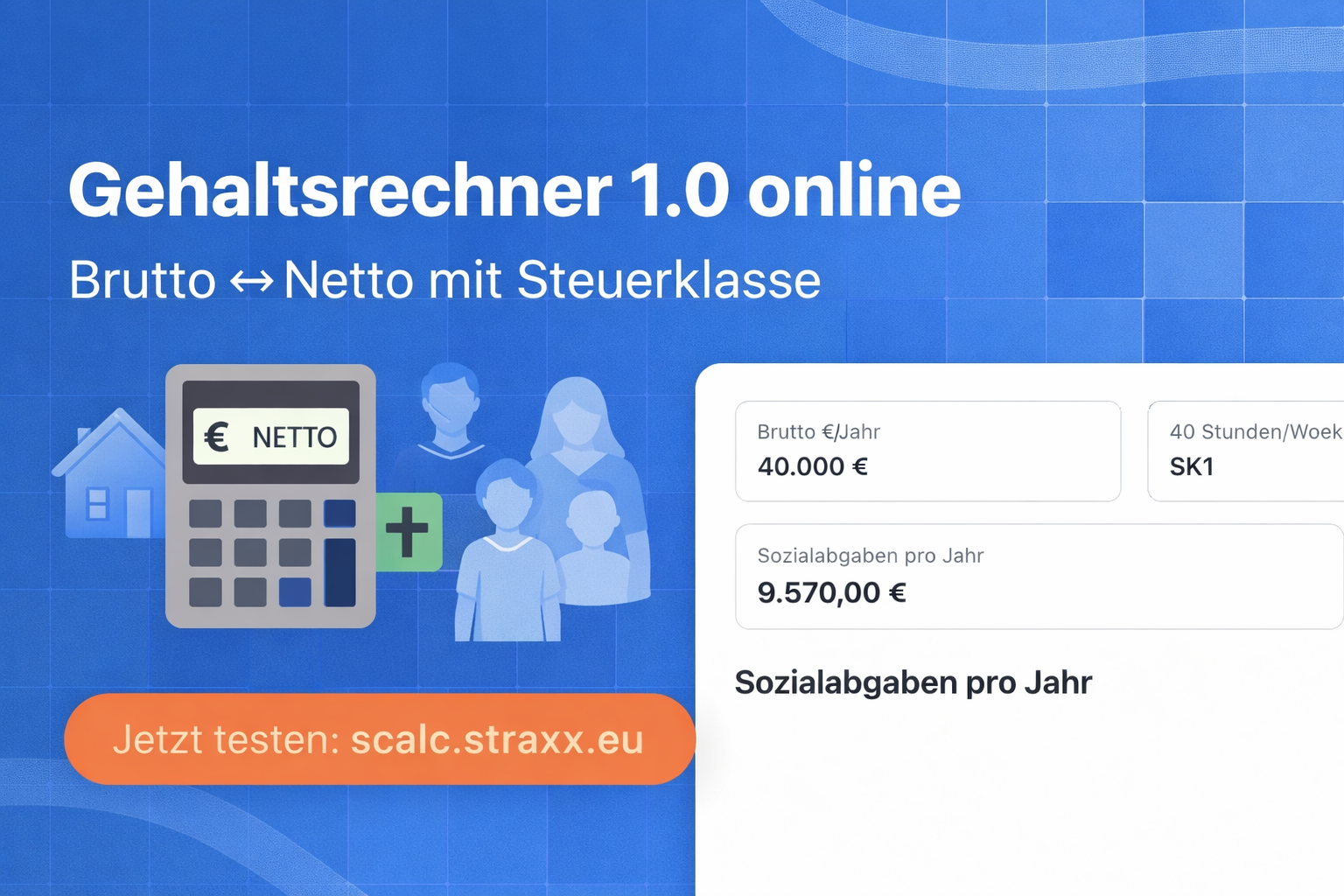 Ein transparenter Gehaltsrechner mit Steuerklassen, Wochenstunden, Kirchensteuer und Vergleichstabelle. Berechnet Brutto zu Netto realistisch, live und ohne Tracking. Jetzt online unter scalc.straxx.eu.